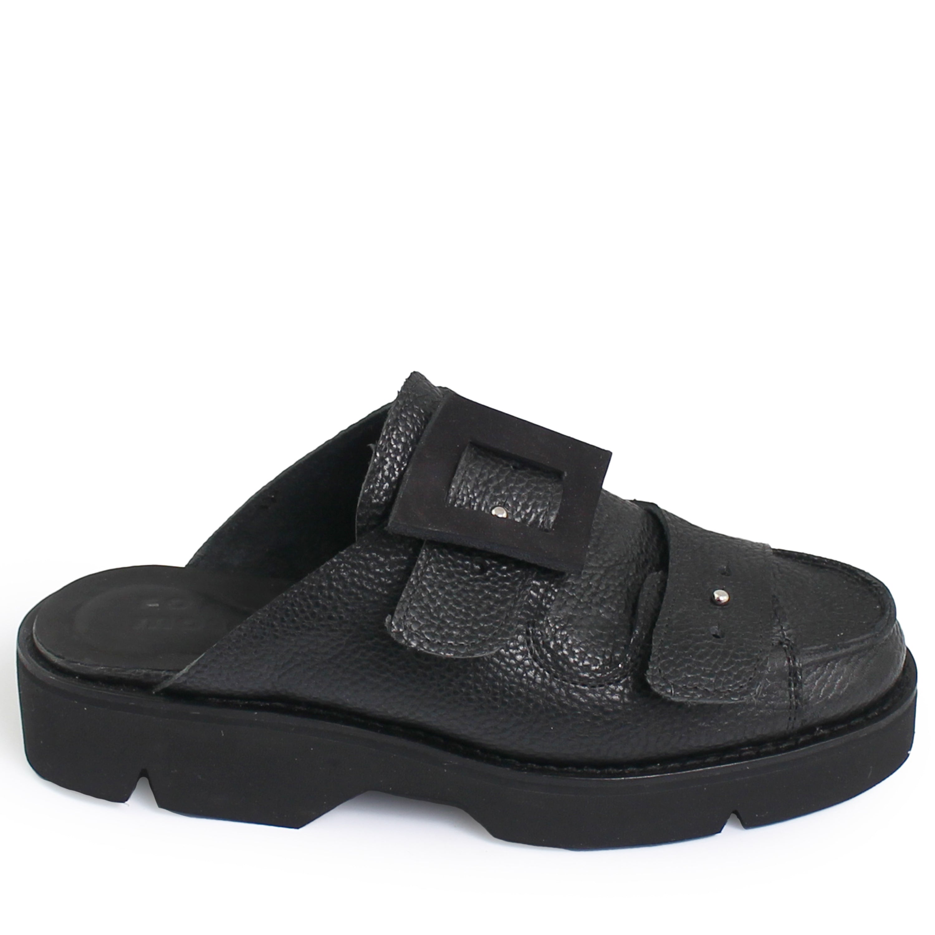 BETTY HIGH + Leather Slides + Black