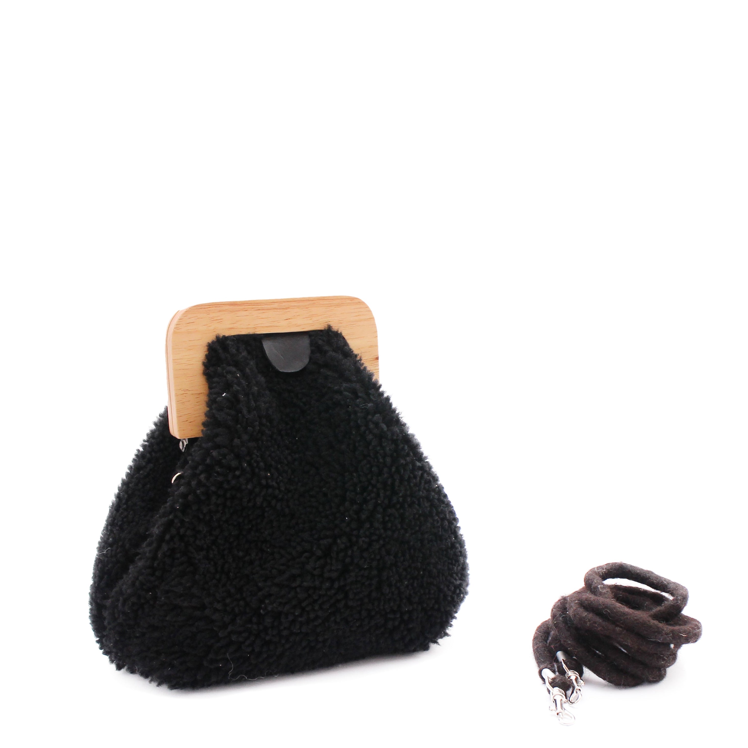 ANGOLO BAG SMALL Curly + Shearling Mini Bag + Black
