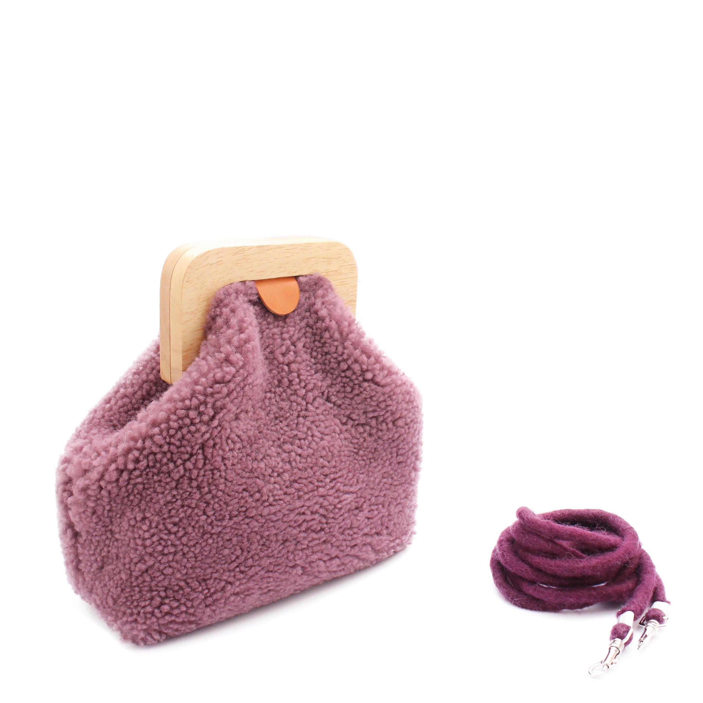 ANGOLO BAG SMALL Curly + Shearling Mini Bag + Mauve