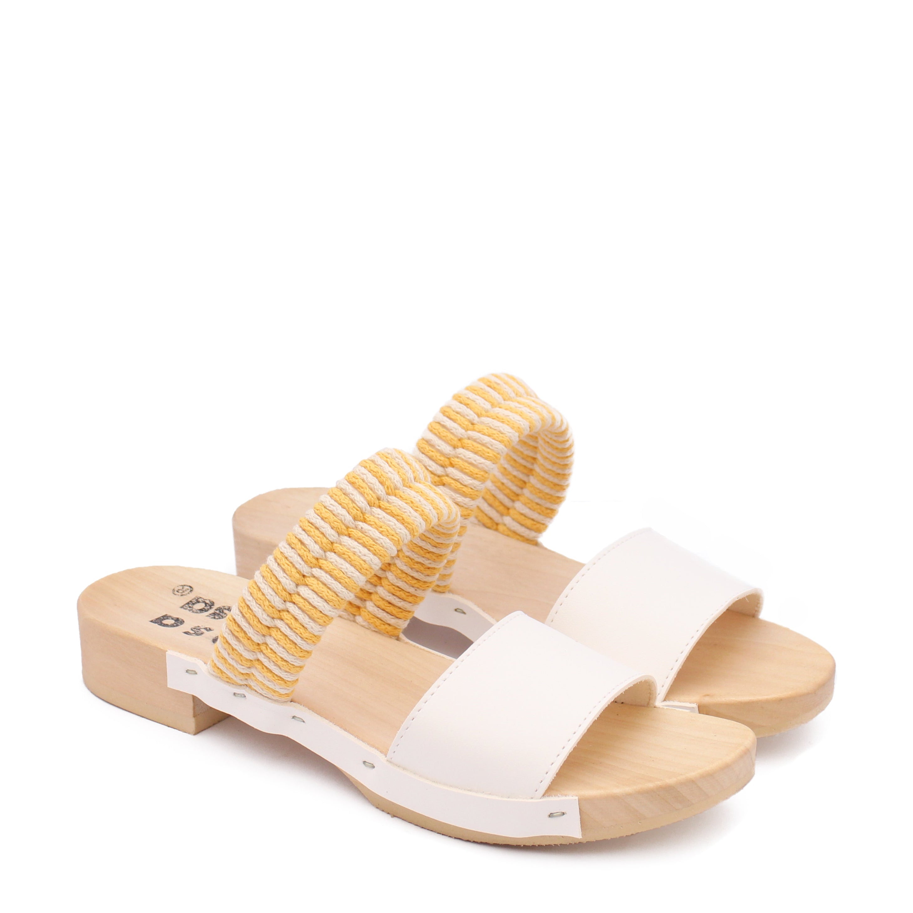 BOBO + Cotton Leather Clog Flats + Yellow / White