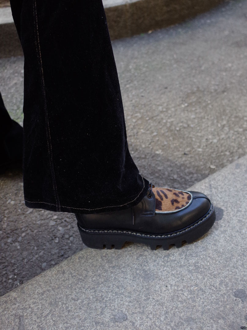 Delemont Boots + Norwegian Welted Lace-up Leather Boots + Leopard Black