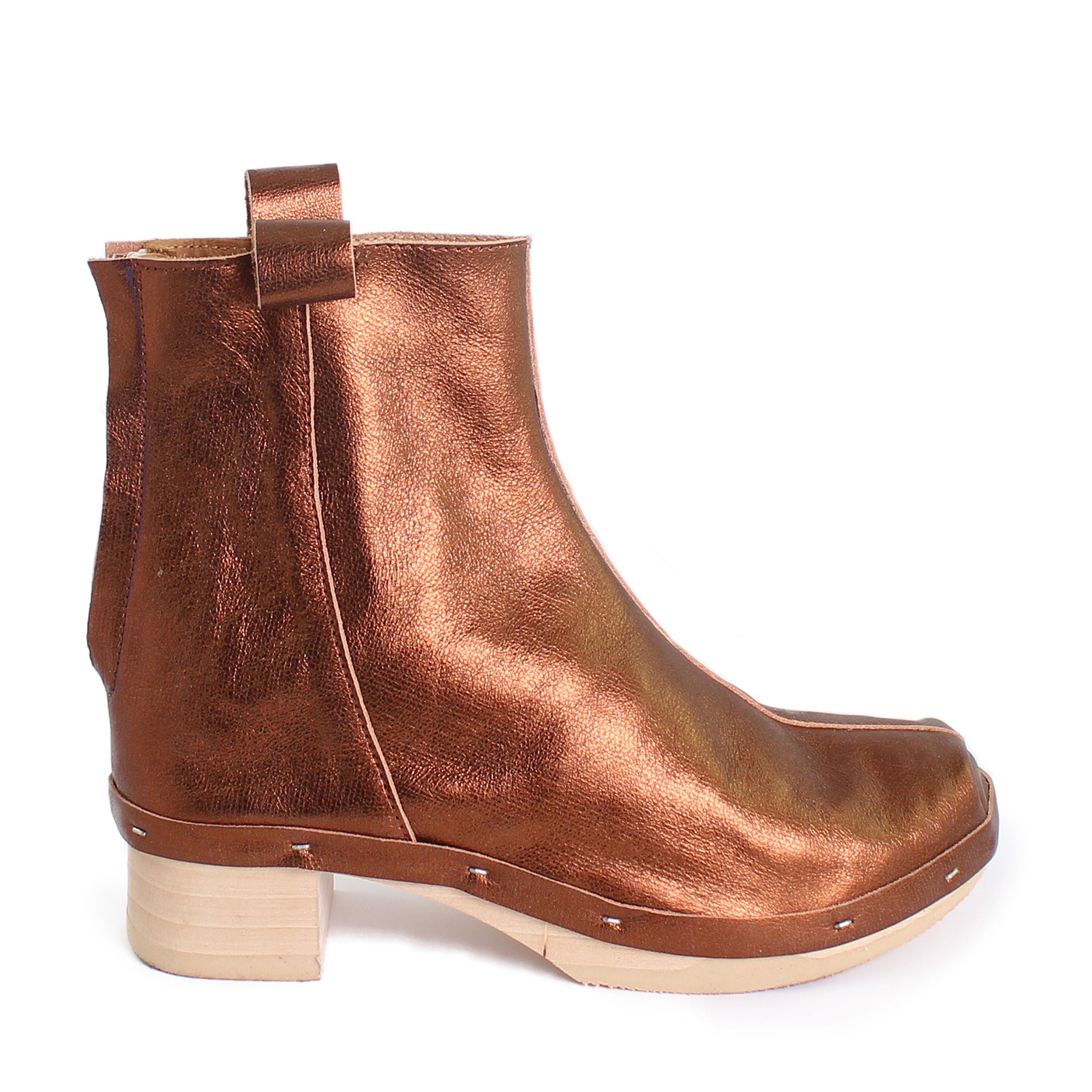 ROSIE Metallic + Leather Clog Boots + Bronze