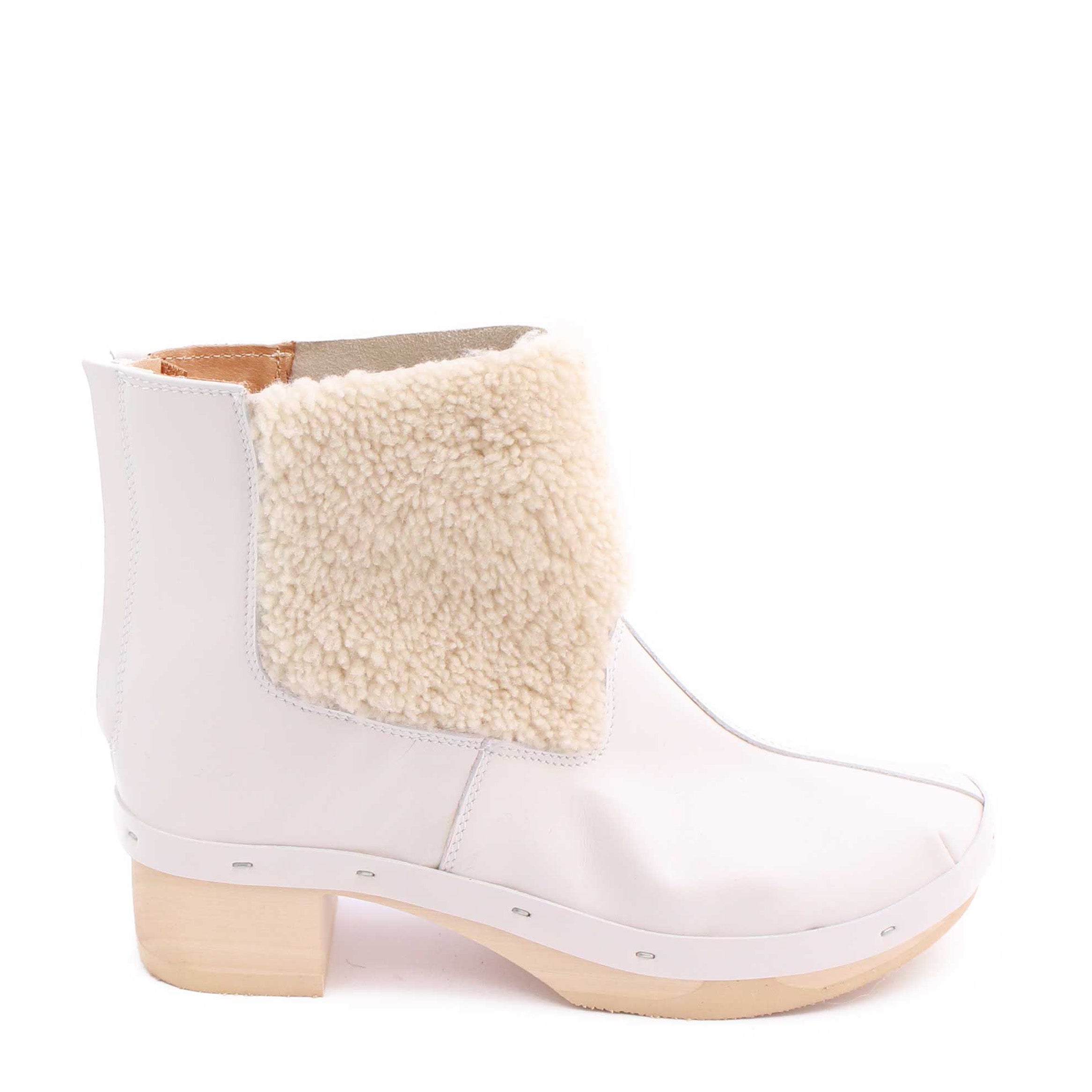 ROCCO shearling + Leather Shearling Clog Boots + Off-white