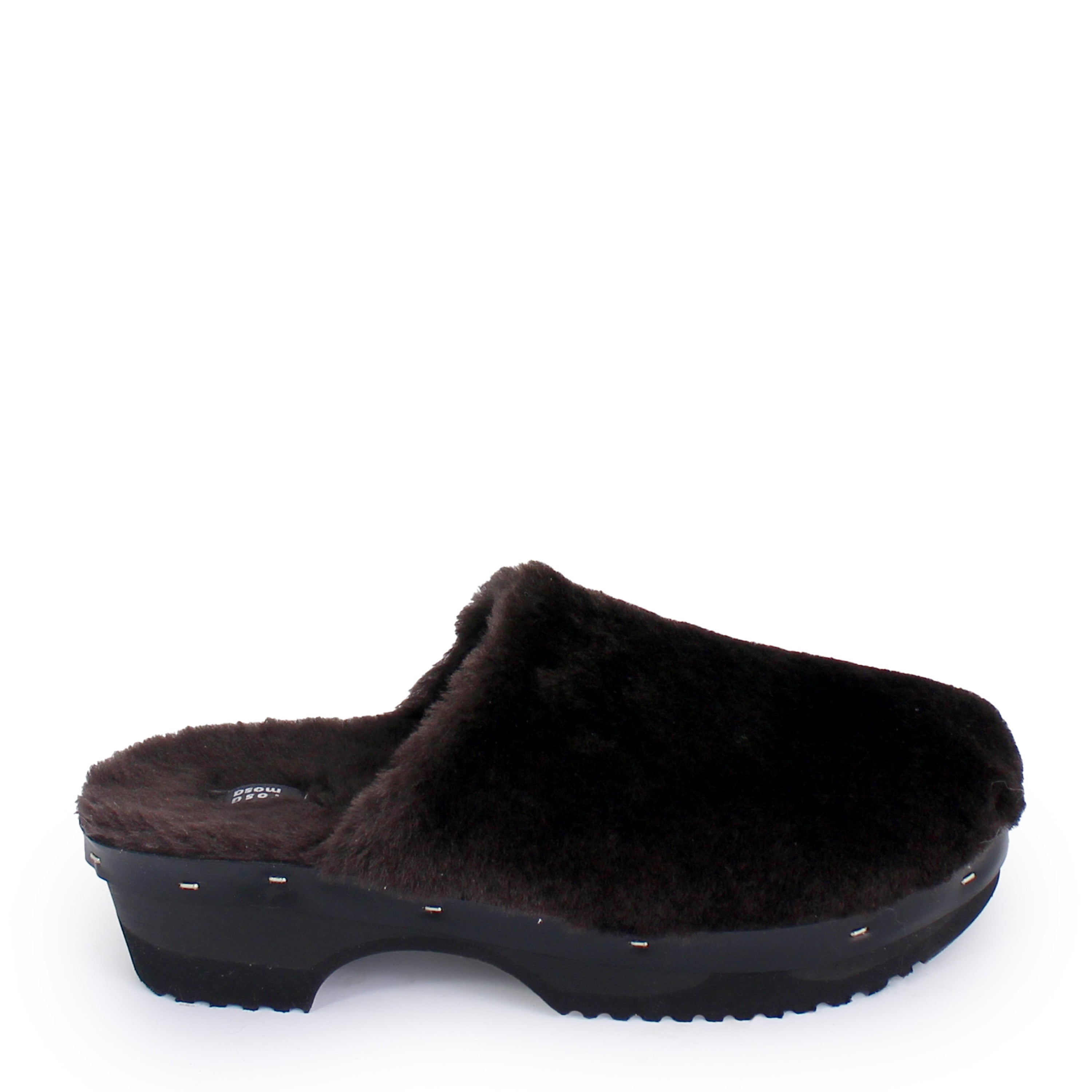 PANTO FULLY + Shearling Dark Clog Shoes + Deep Brown