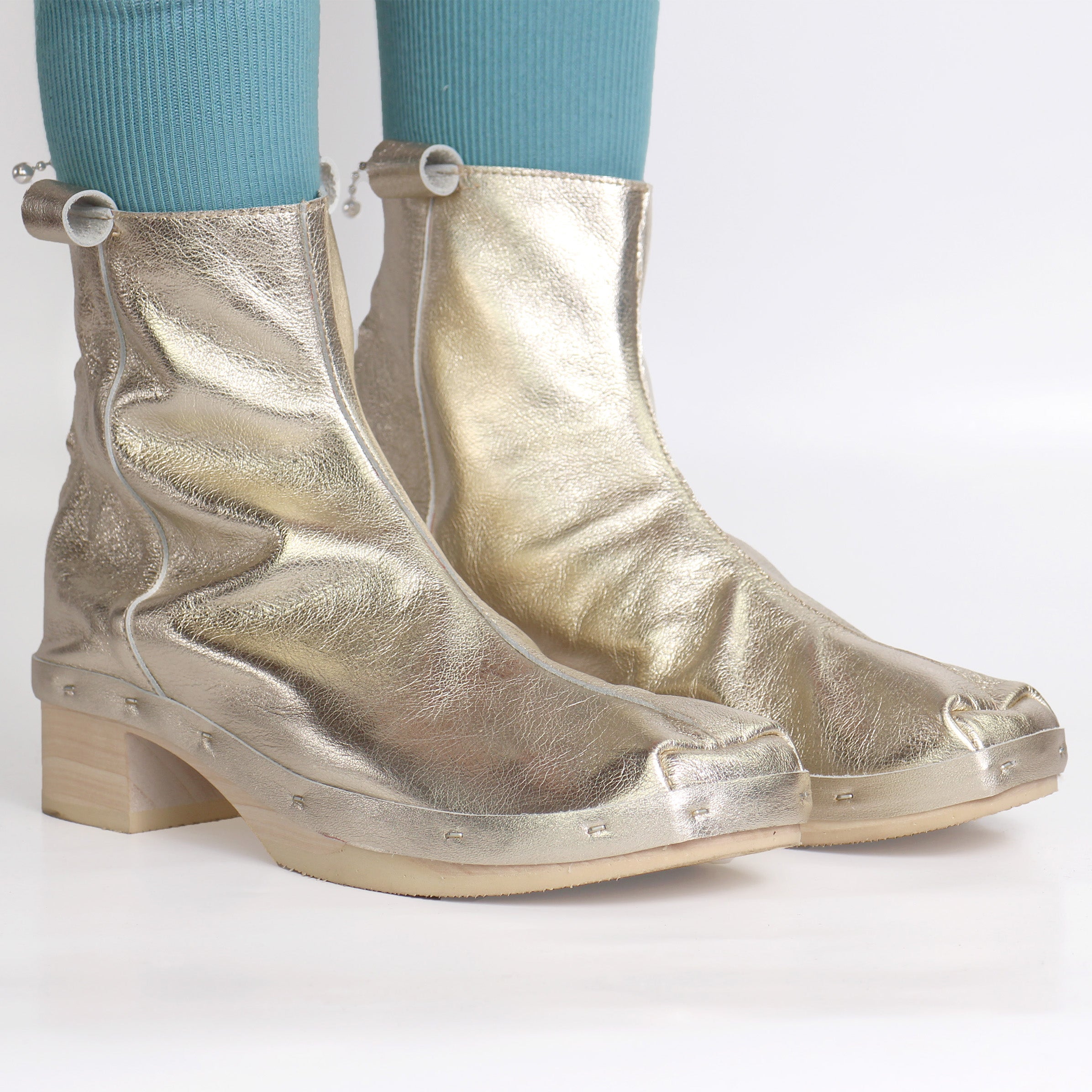 ROCCO GEO Metallic + Leather Clogs + Champagne