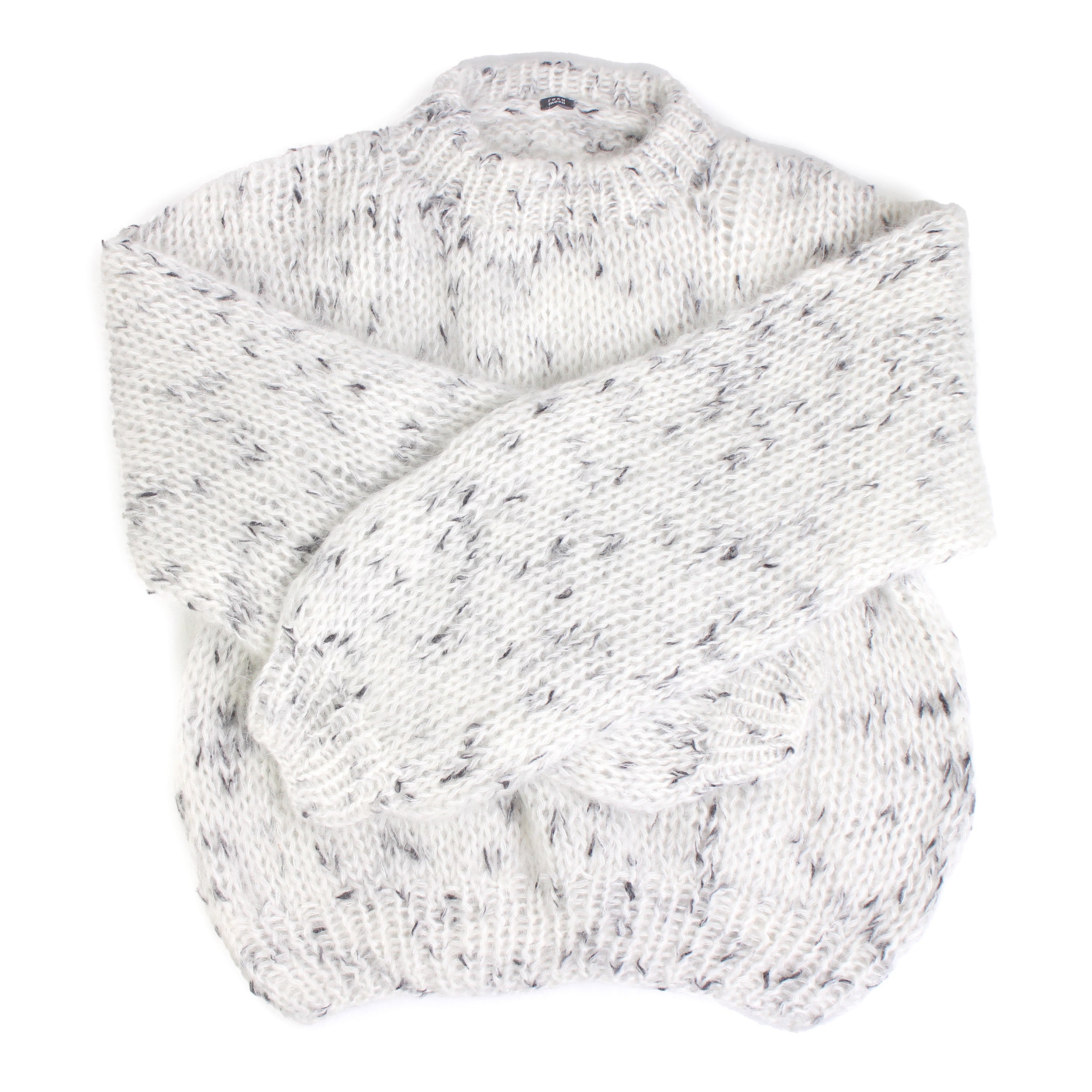 Unisex Hand Knit Mohair Pullover + White Black Dot