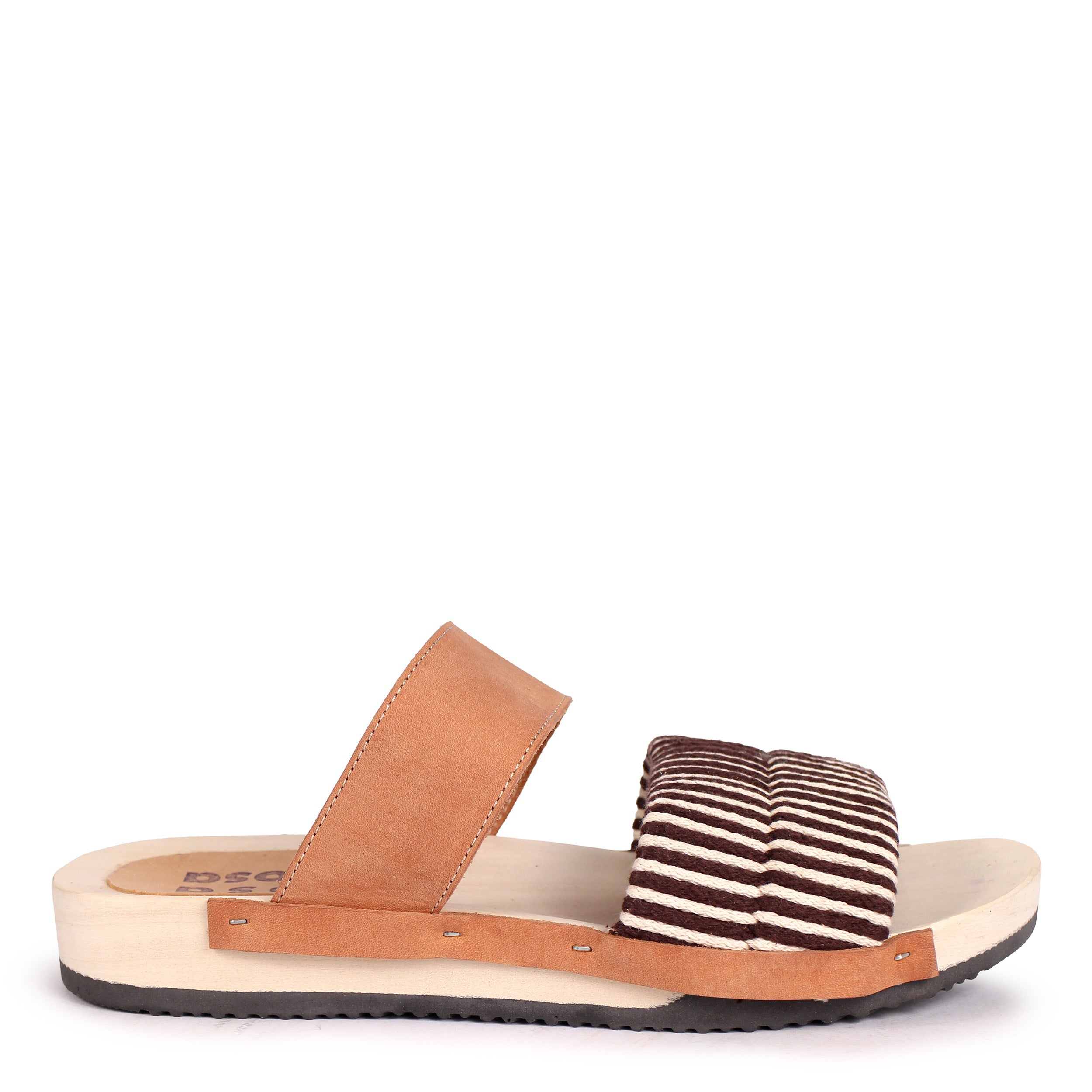 LANG KNOT + Leather Flat Clogs + Brown Natural
