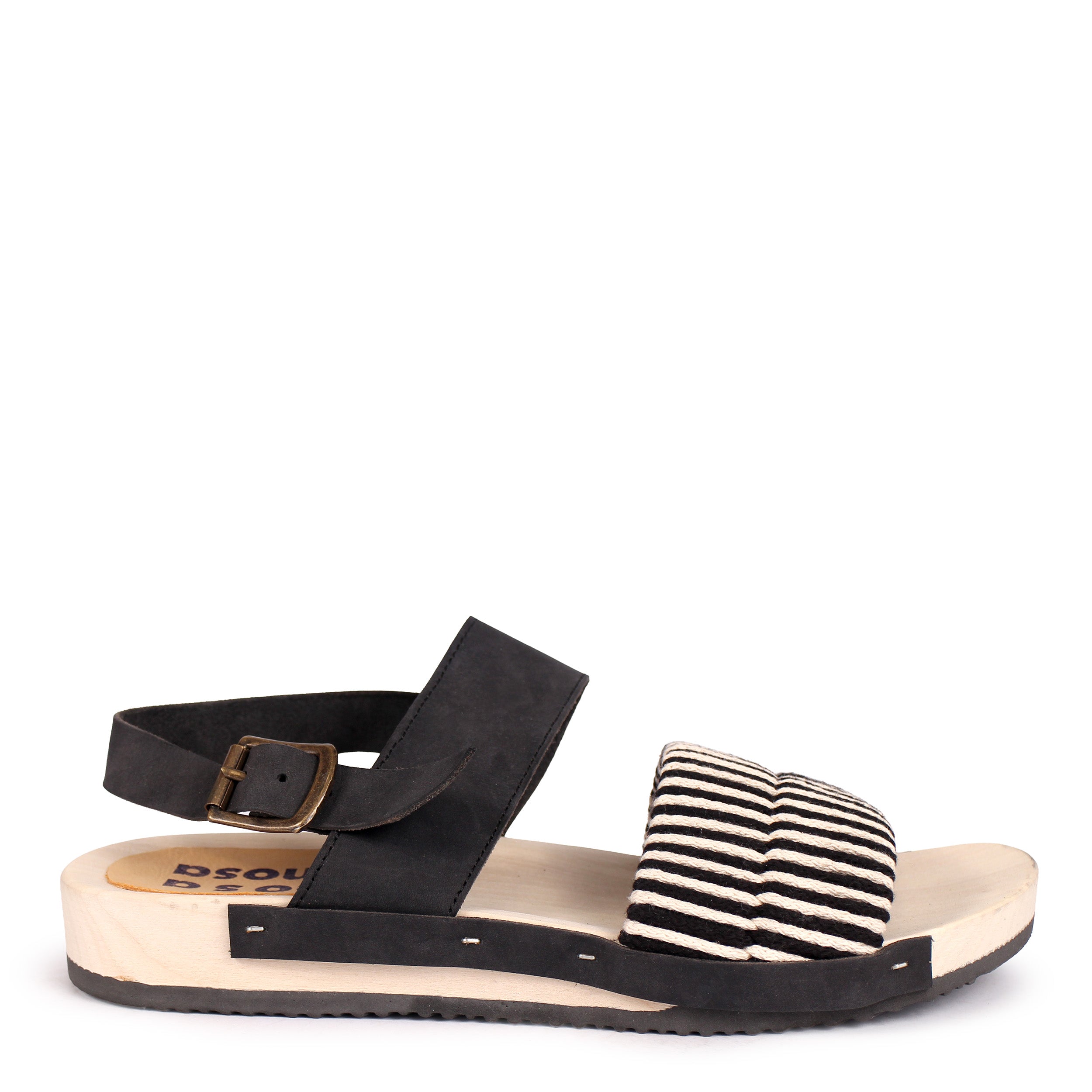 DONAU JUDO PELLE + Leather Dark Clog Sandals + Black Silver