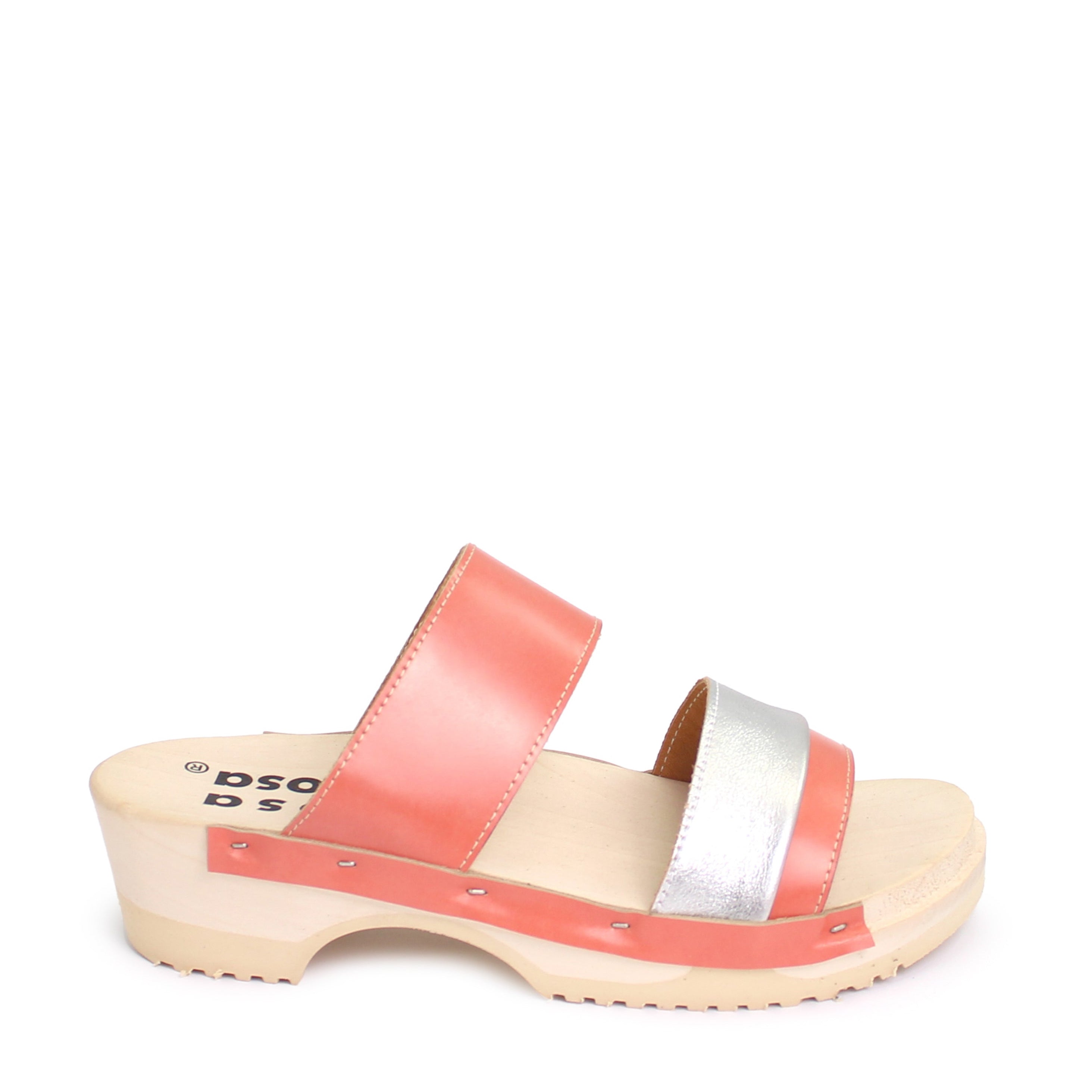 DONAU JUDO PELLE + Leather Clog Sandals + Apricot Pink Silver