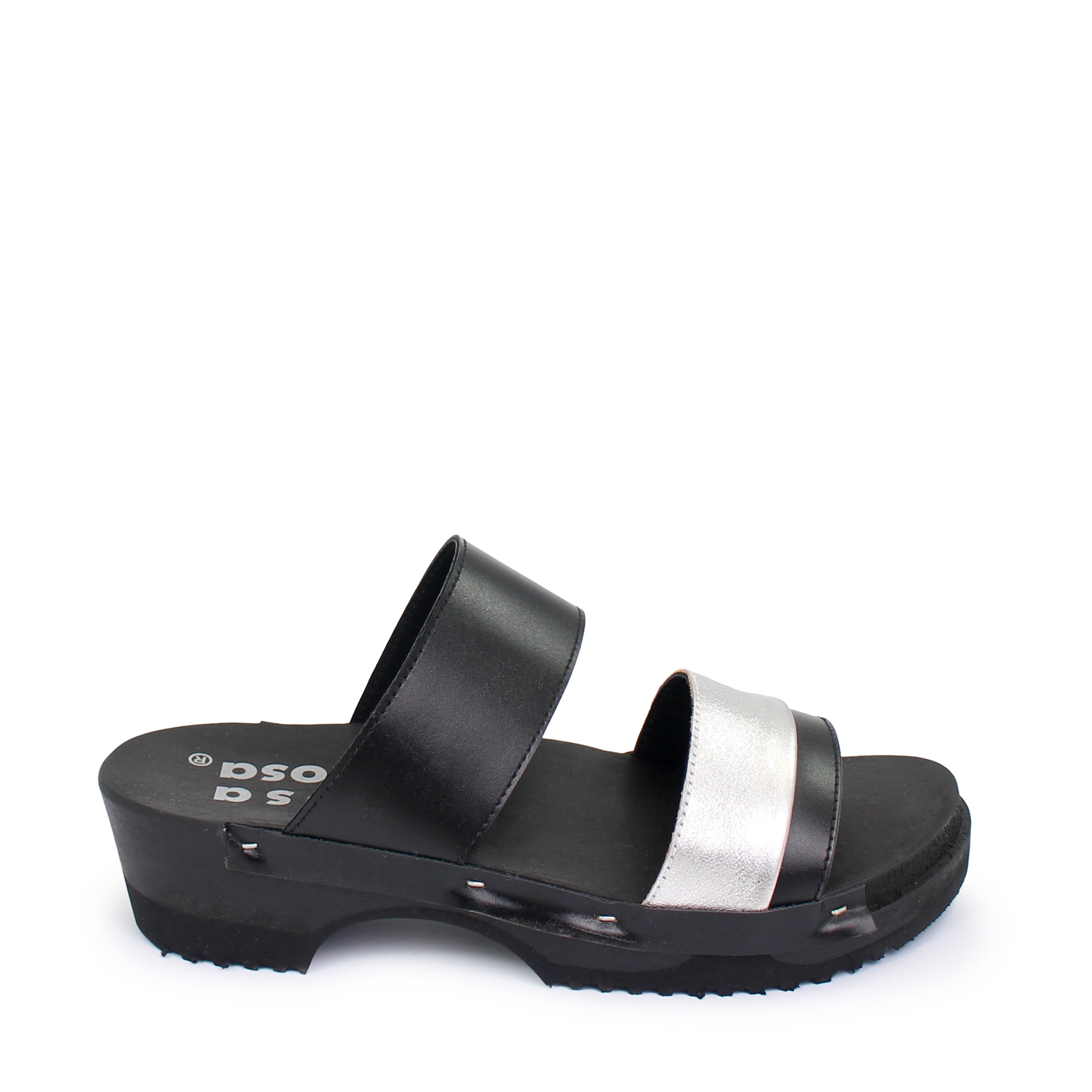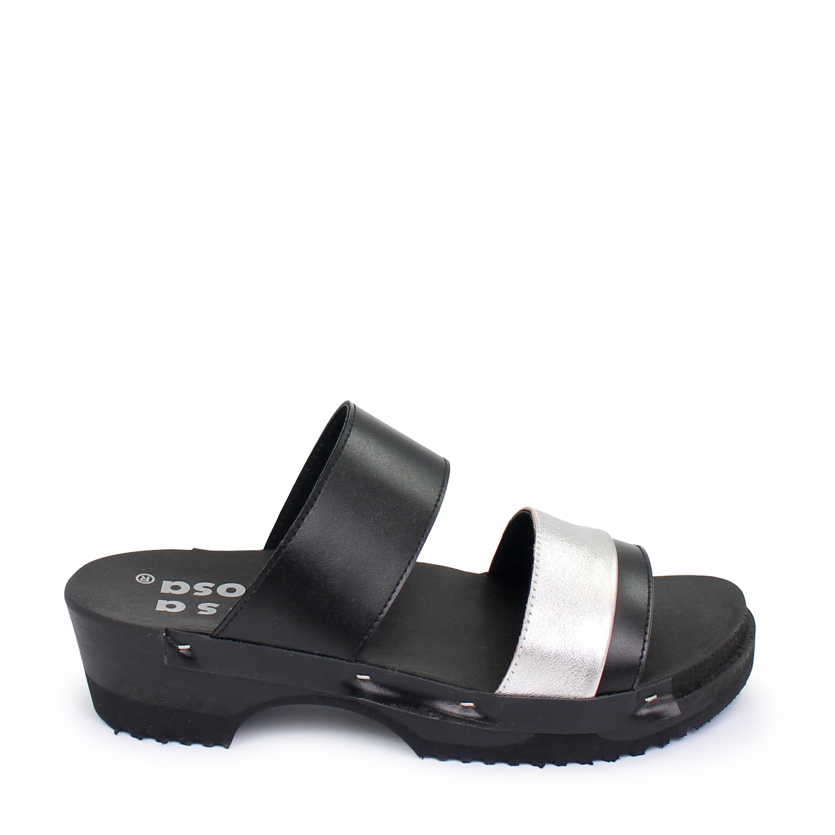DONAU JUDO PELLE + Leather Dark Clog Sandals + Black Silver