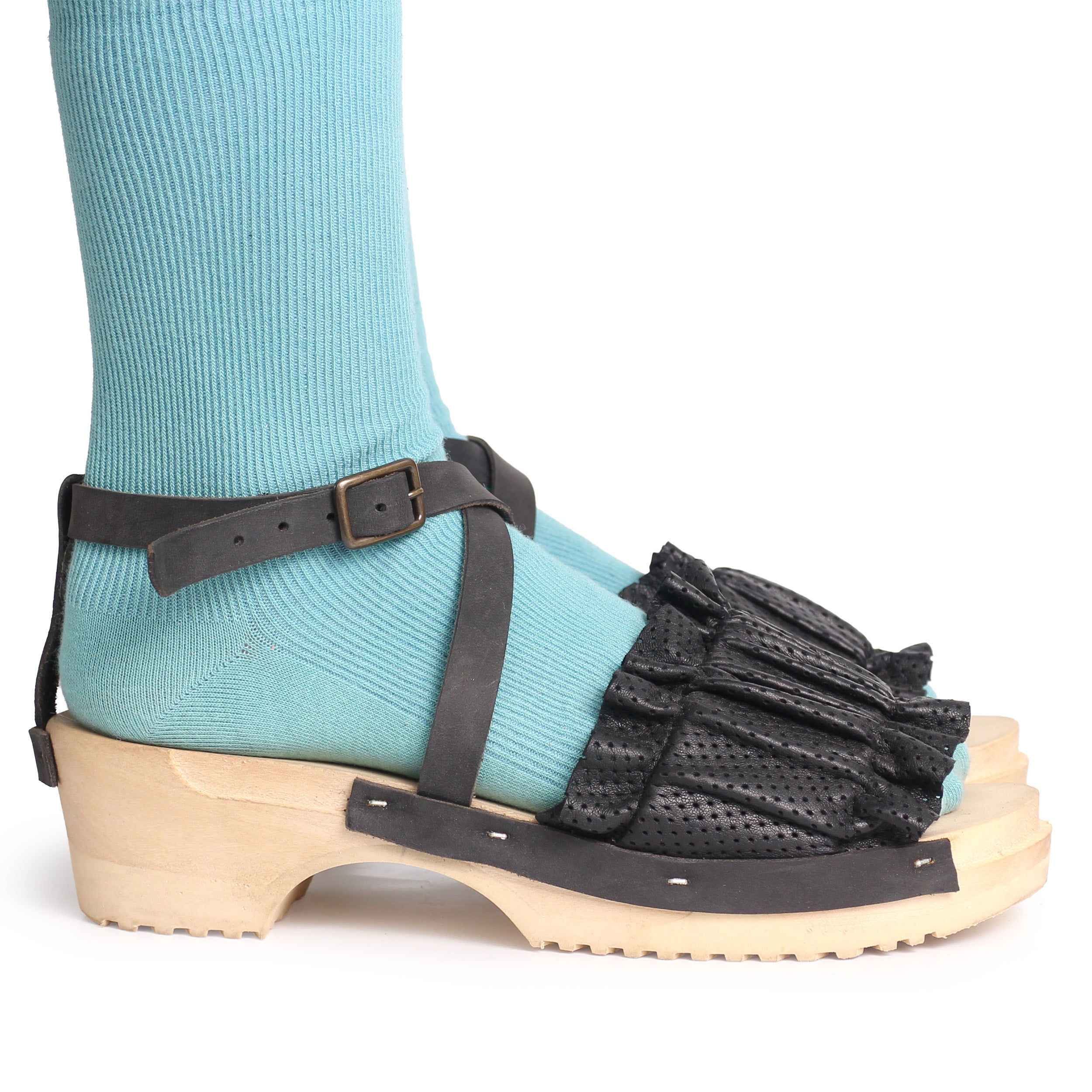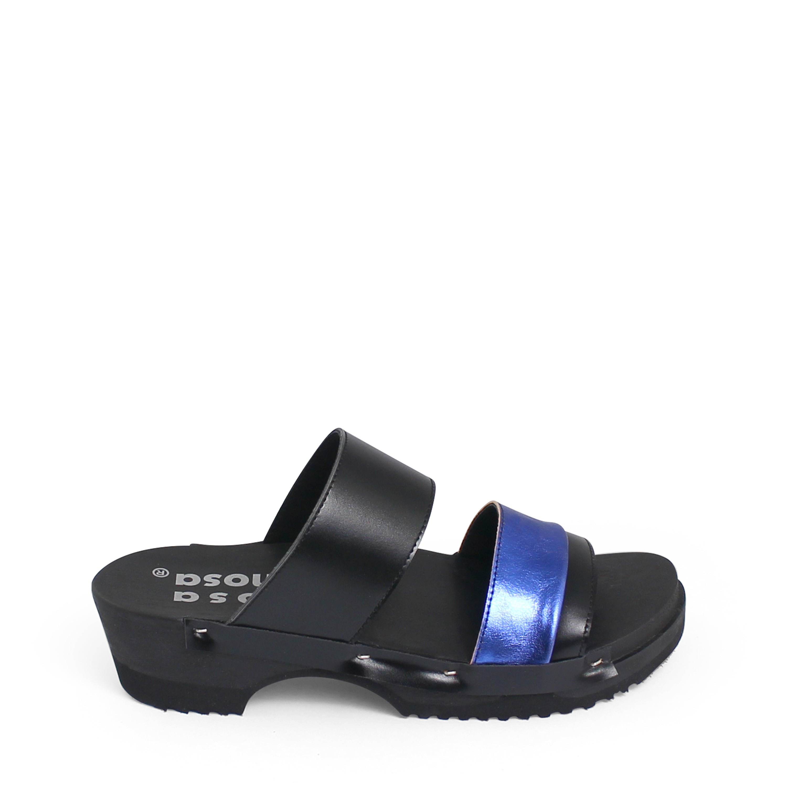 DONAU JUDO PELLE + Leather Dark Clog Sandals + Black Blue