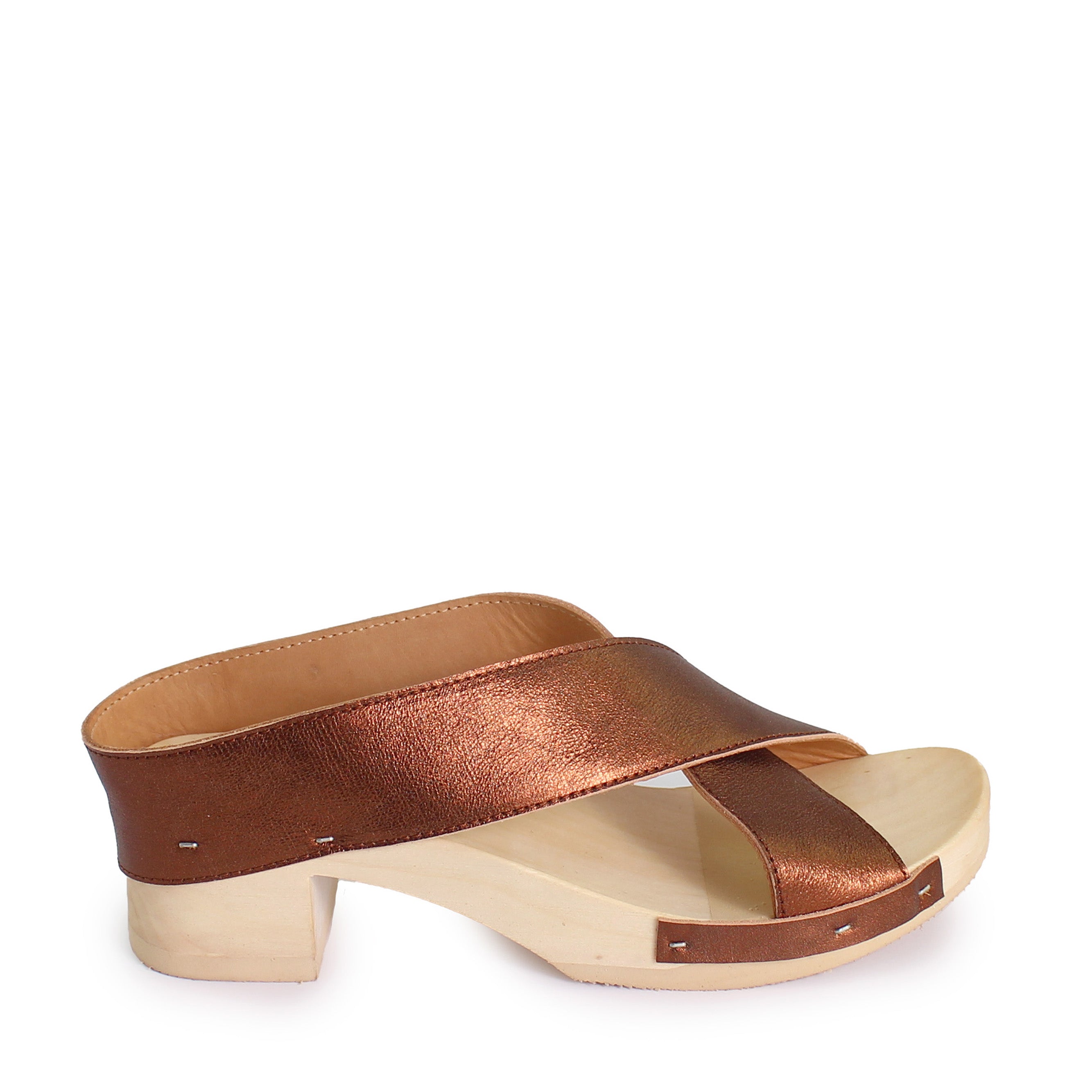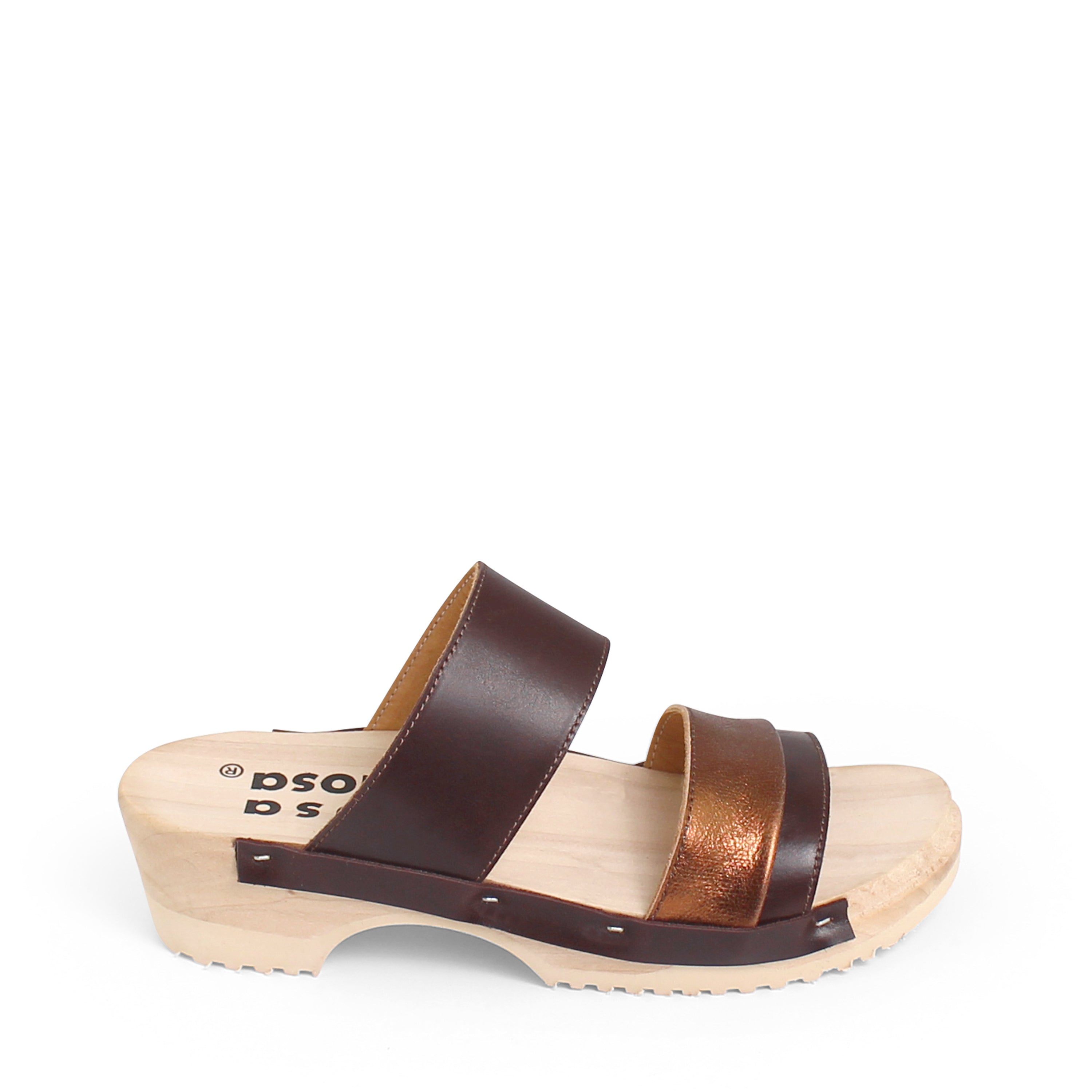 DONAU JUDO PELLE + Leather Clog Sandals + Brown Bronze