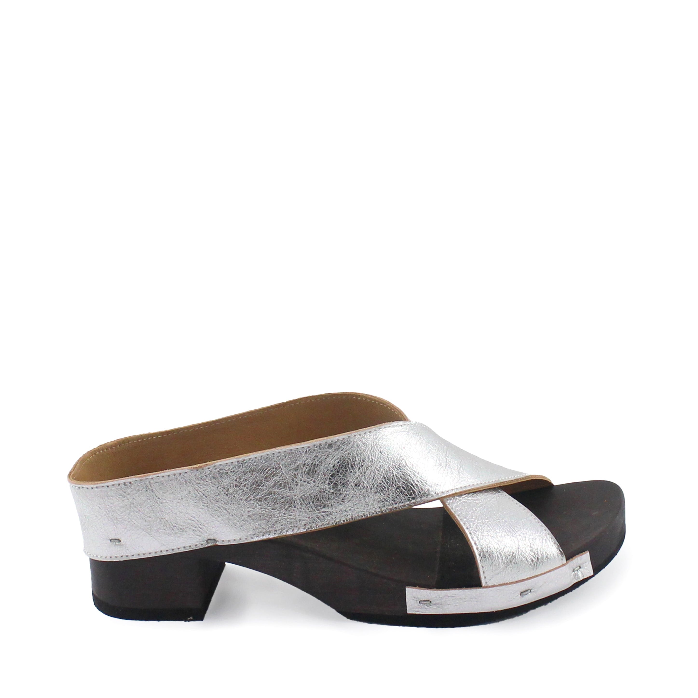 ROCCO JUDO X Metallic + Leather Dark Clog Sandals + Silver