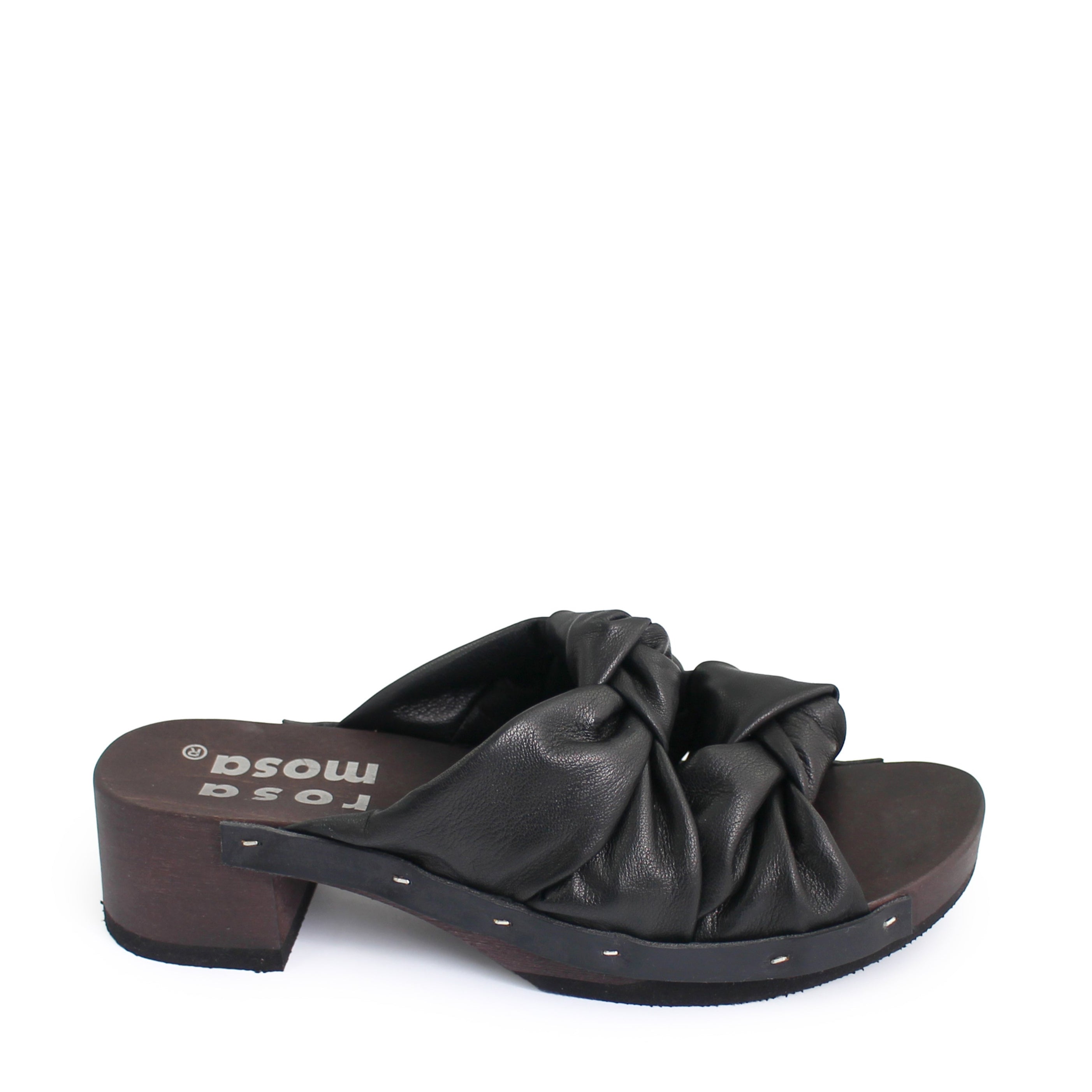 ROCCO X KNOT + Leather Dark Clog Sandals + Black