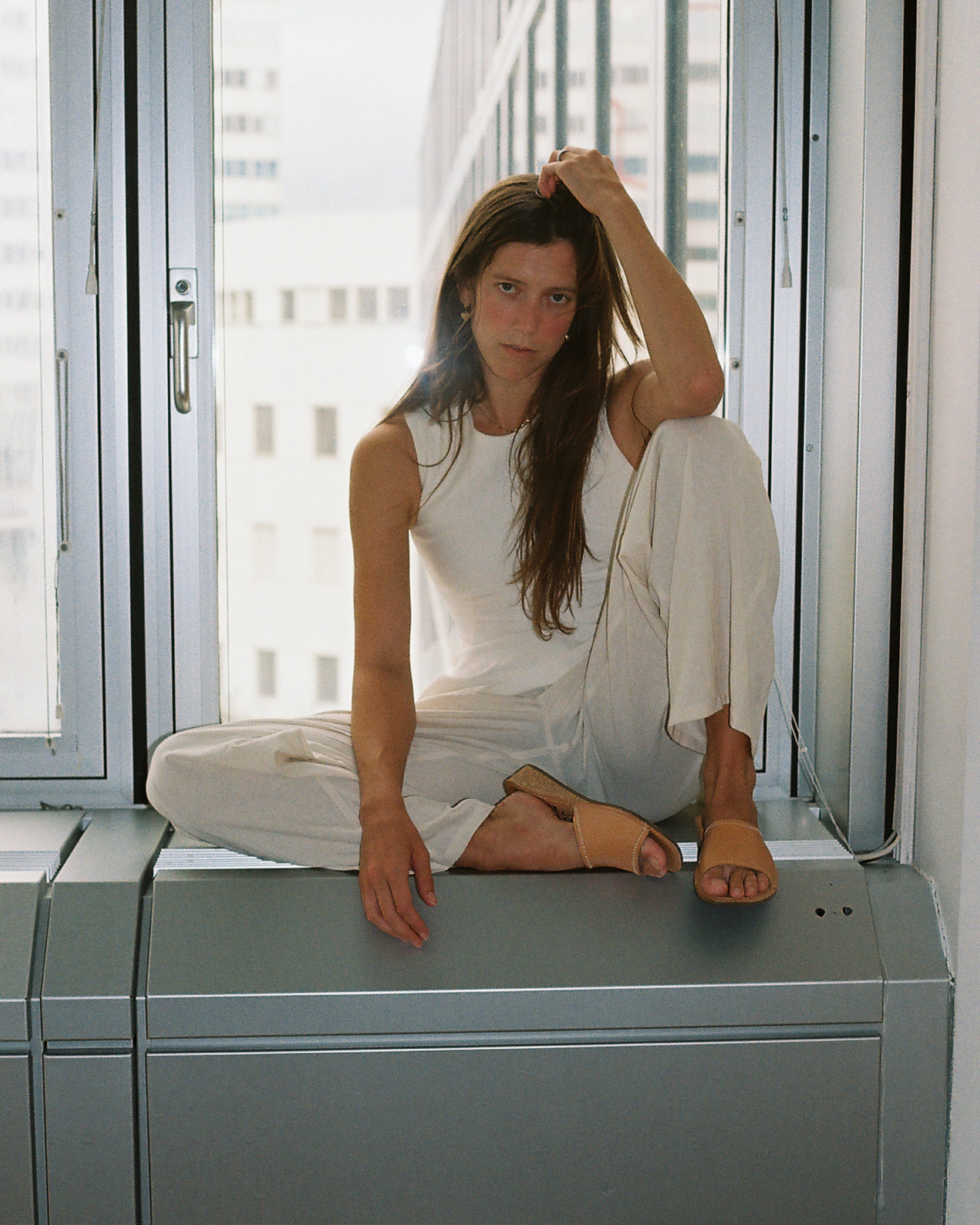 BETTY HIGH + Leather Slides + Natural