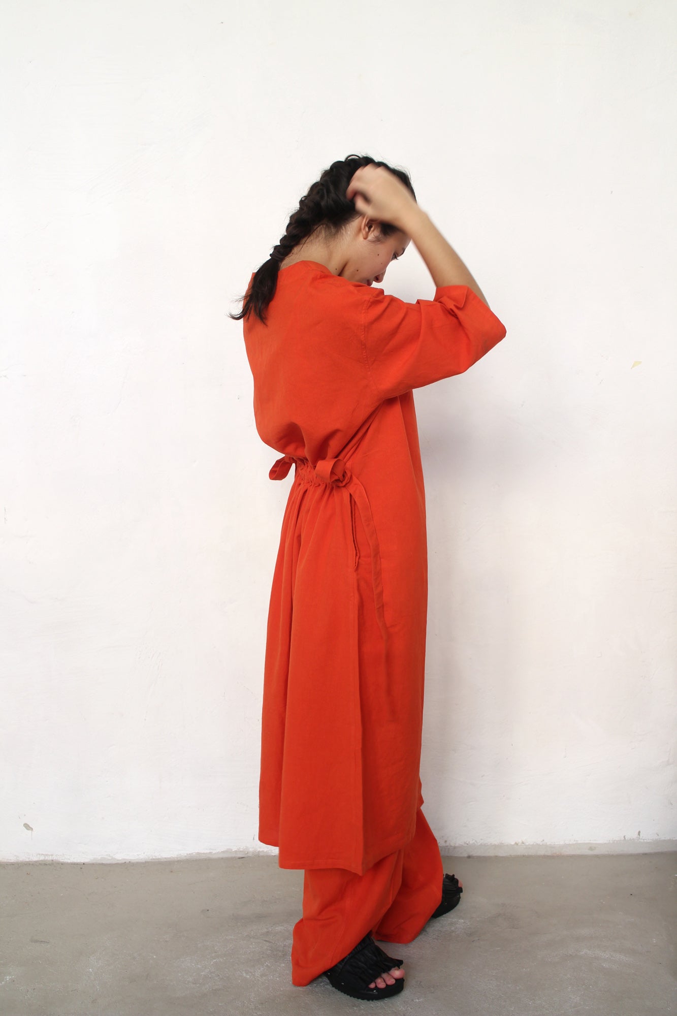 AJAY PANTS + Eco dye Cotton Skirts + Fire Orange