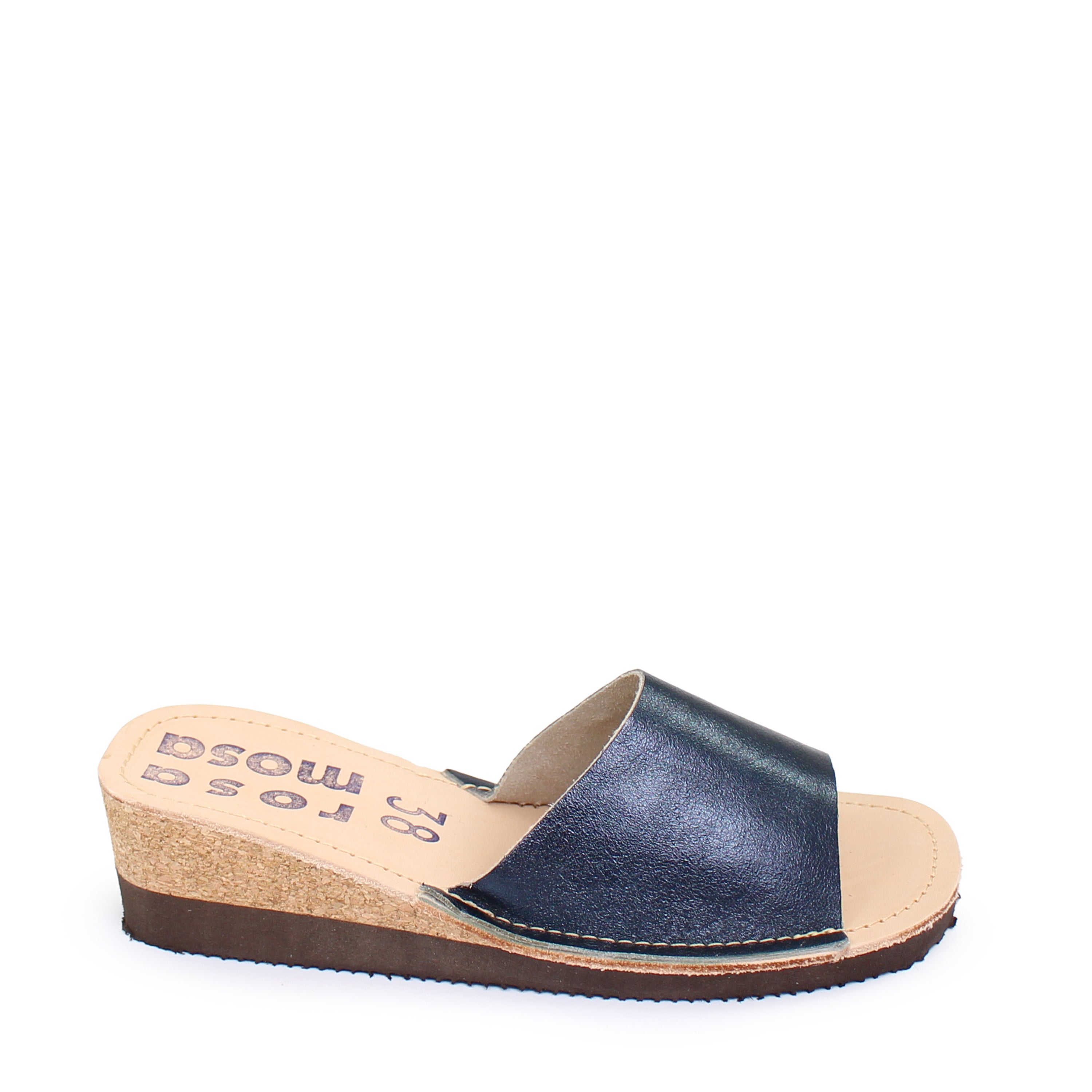 BETTY HIGH + Leather Slides + Metallic Blue