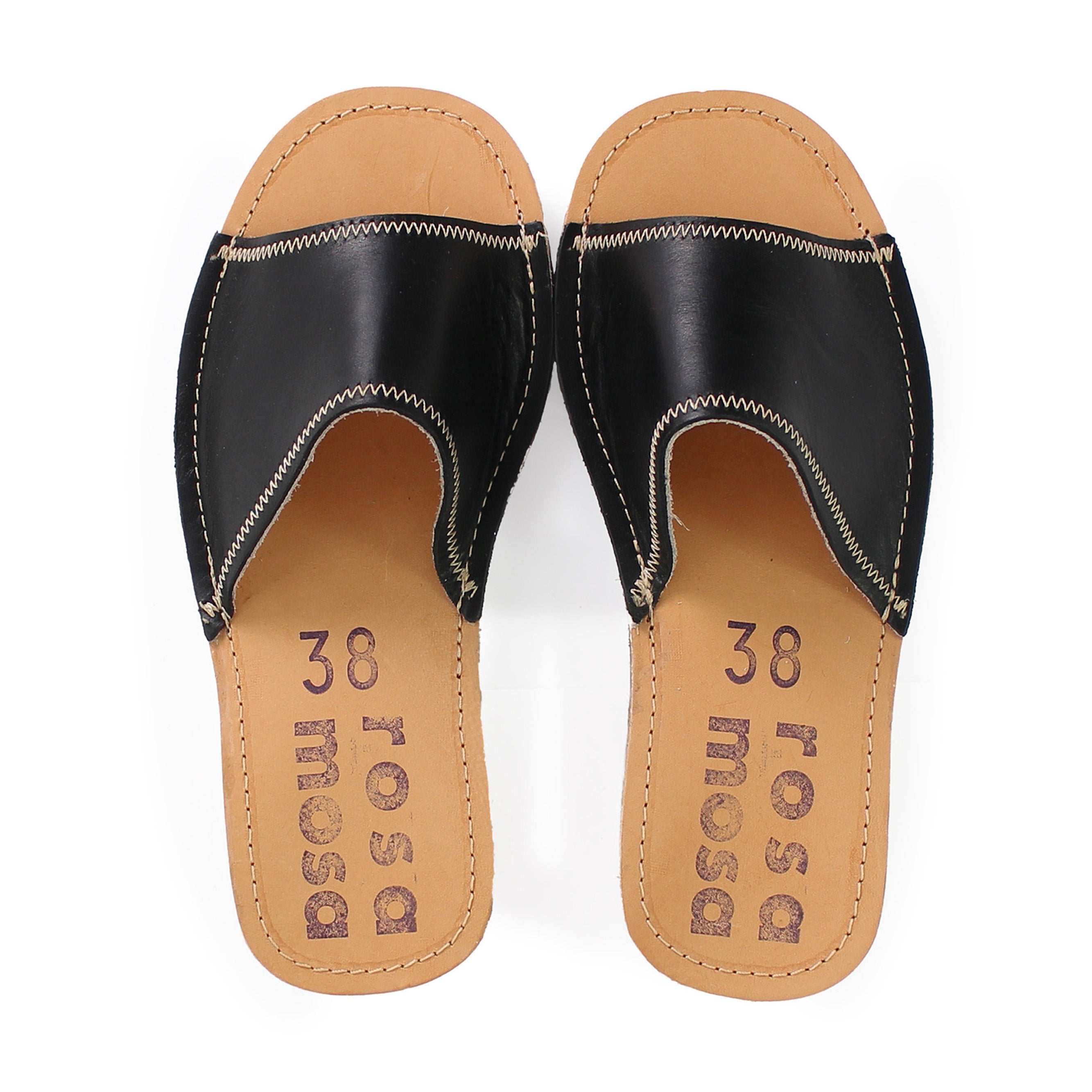 ZIC-ZAC SLIDES + Leather Slides + Black