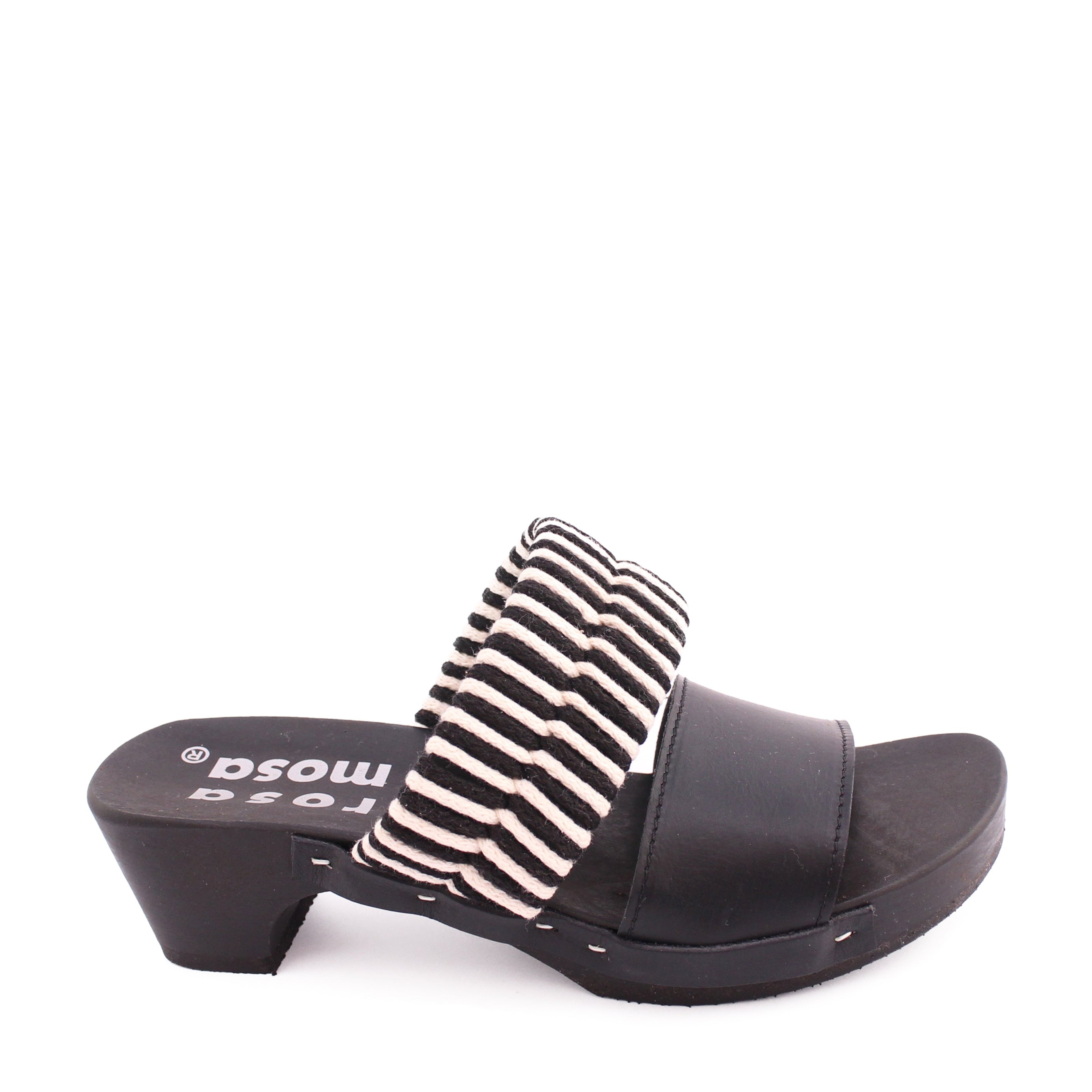 MAGO KNOT + Cotton Leather Dark Clog Sandals + Black / Natural