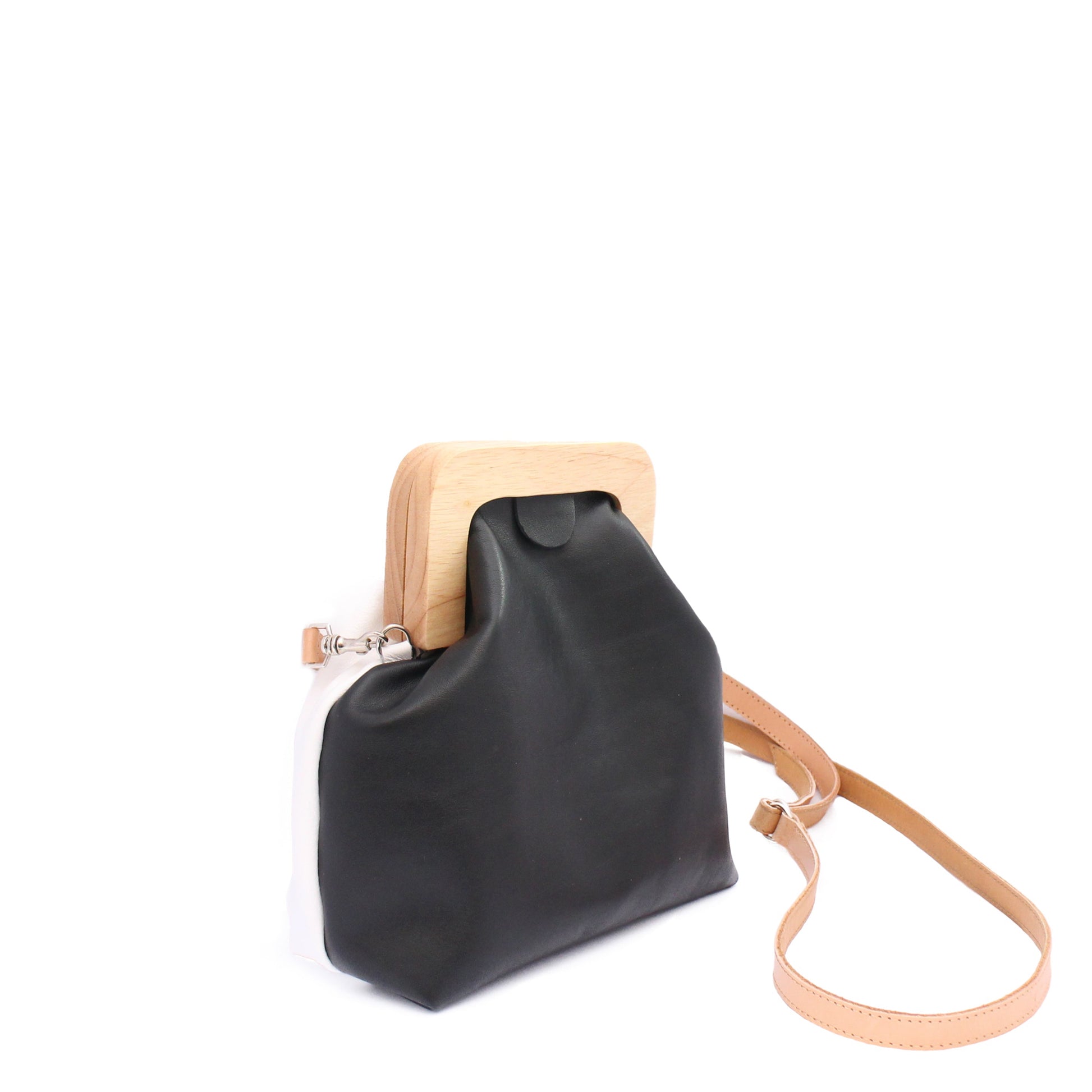 ANGOLO BAG SMALL Curly Mix + Shearling Mini Bag + Black & White