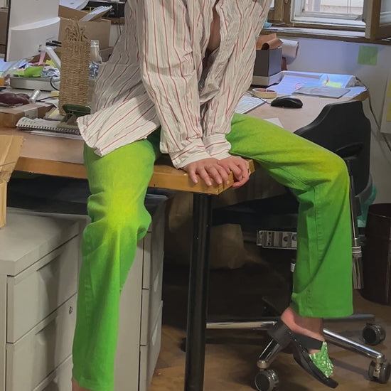 Crafted from premium Italian cow leather for the base strap, these sandals feature a super-comfortable, handwoven upper made from light yellow, white, and metallic silver elastic fabric.
