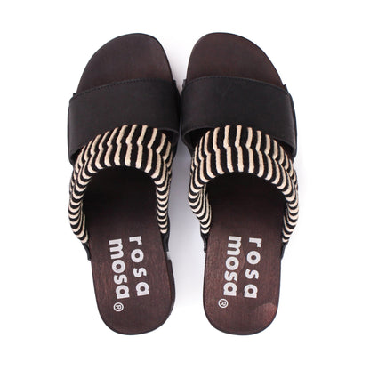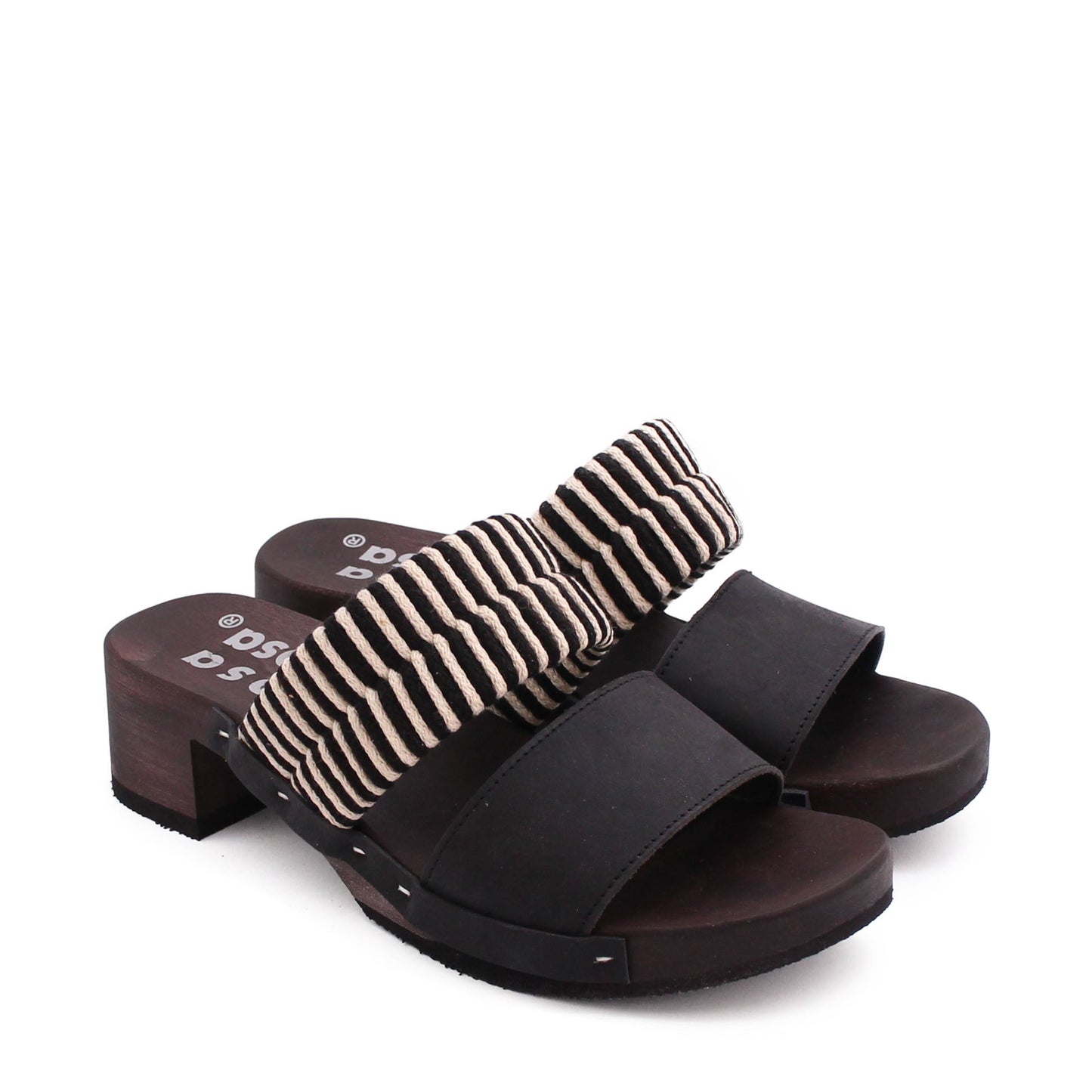 ROCCO KNOT + Cotton Leather Dark Clog Sandals + Black Natural