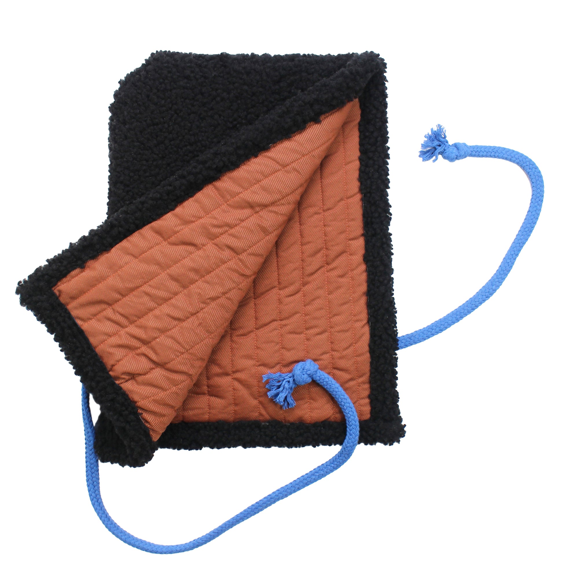 SHEARLING HOODIE + Black with cobalt blue cord