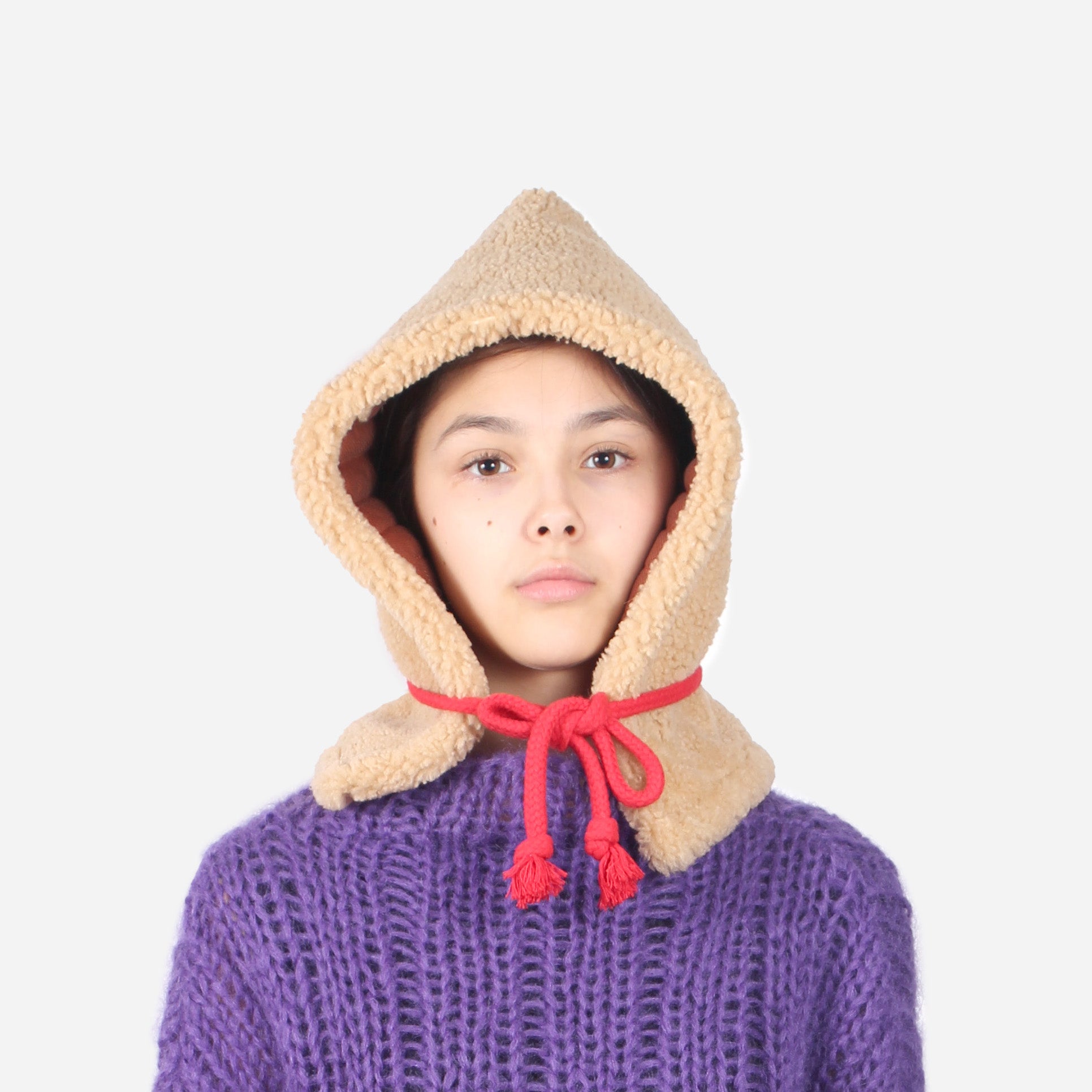 SHEARLING HOODIE + Natural Miele with red cord