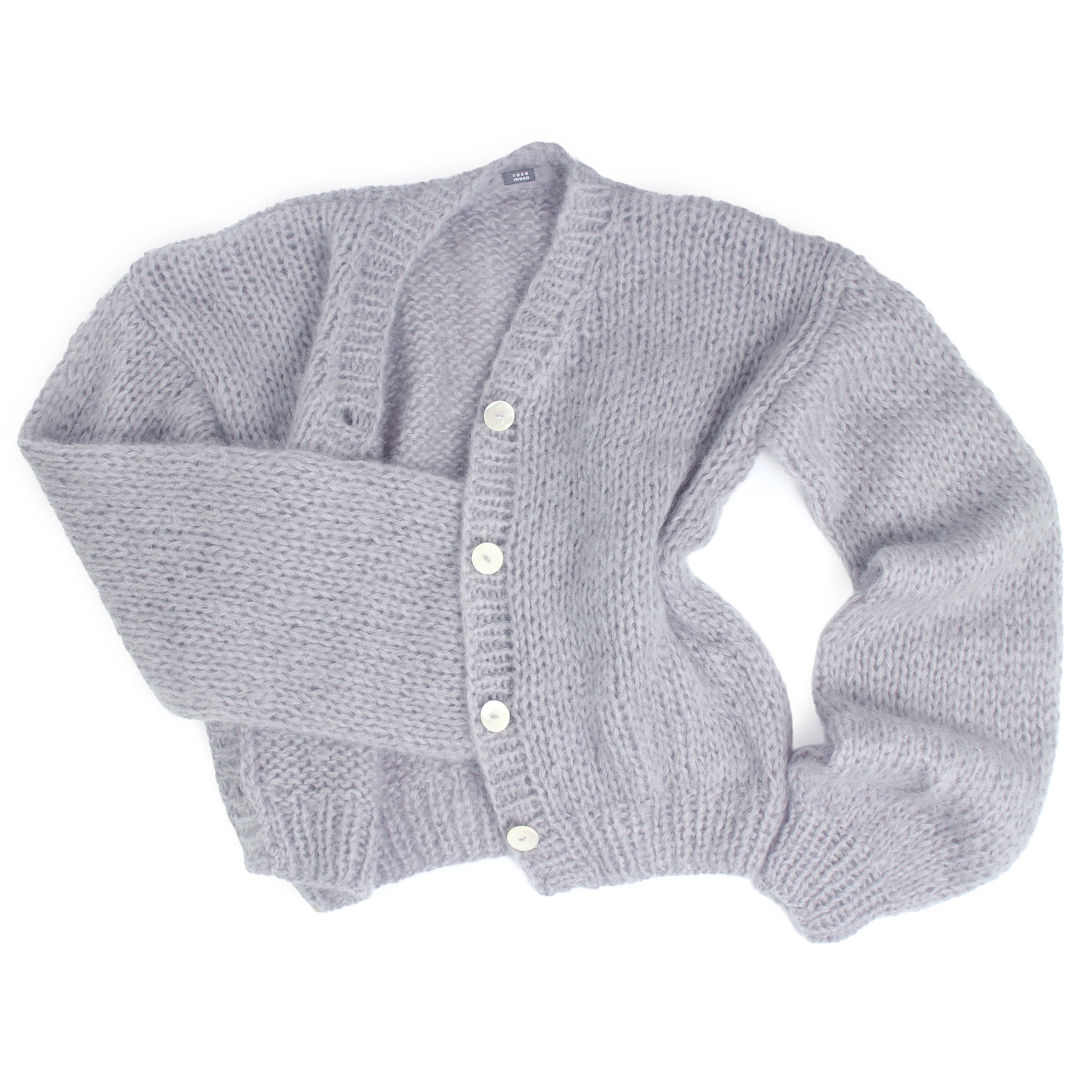Unisex Hand Knit Mohair Cardigan + Blue Gray