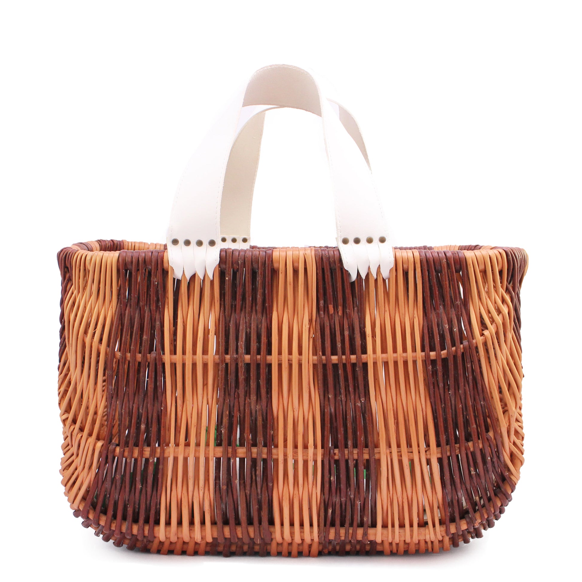 WILLOW DELTA STRIPE + Rattan Shopper Bag + White